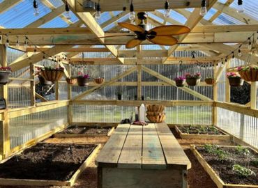For our customers with green thumbs, a custom built greenhouse will help you bring your plant sanctuary to life! The one shown above was used for vegetable growing and included hooks for hanging baskets. It also showcased a built in sprinkler system, electricity, a ceiling fan, and a work table in the center.